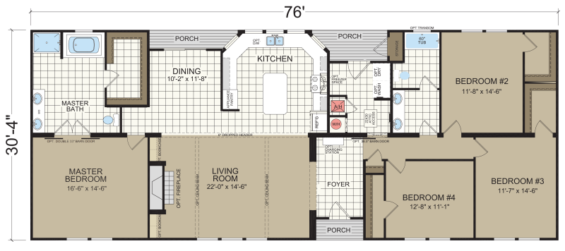 Dimensions, floor plans, elevations, features and other information are subject to change without notice. Square footage and other dimensions are approximations. Elevations, photography and videos are often shown with optional features and/or third party additions, such as garages and porches that may not be available in all regions or situations. Décor selections shown in photography and renderings may not represent the current offerings. Visit your local Champion retailer for more details.